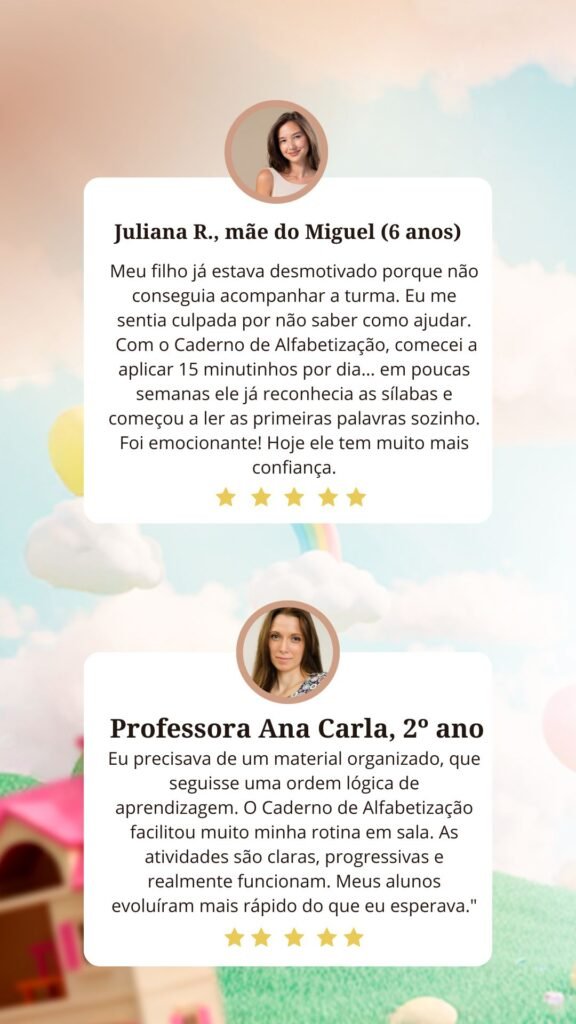 Nada de pular etapas. Nada de confundir a criança. Cada PDF prepara para o próximo.