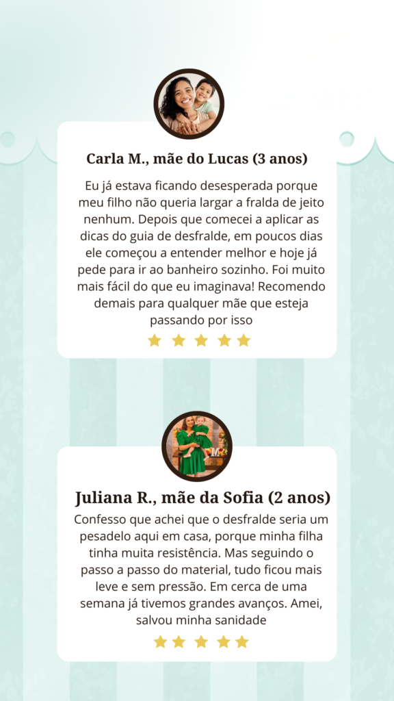 ❌ Compara com outras crianças: “O filho da vizinha já desfraldou!”